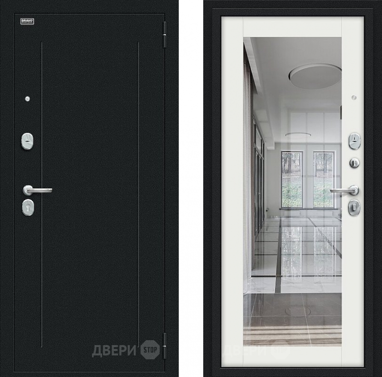 Входная металлическая Дверь Bravo Флэш Букле черное/Bianco Veralinga в Зарайске 860х2050 мм