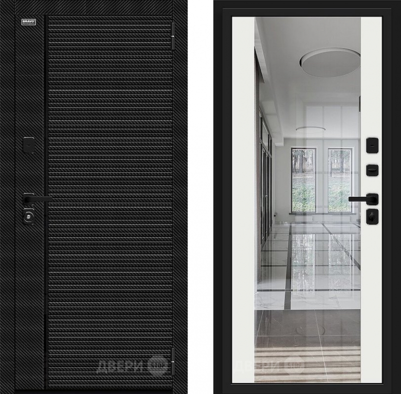 Входная металлическая Дверь Bravo Лайнер-3 Black Carbon/Off-white в Зарайске 860х2050 мм