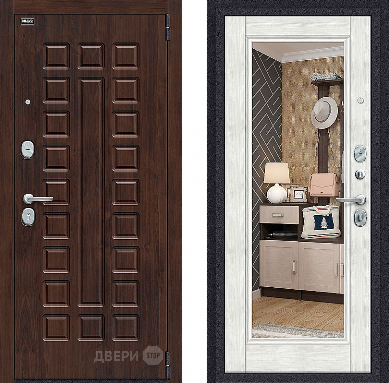 Входная металлическая Дверь Bravo Оптим Урбан с зеркалом Bianco Veralinga в Зарайске 860х2050 мм