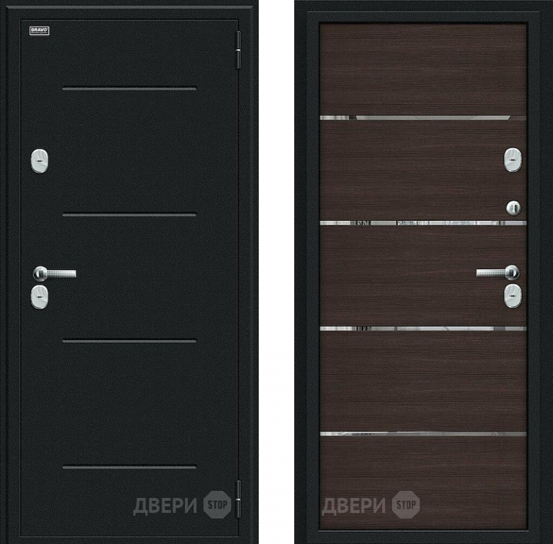 Входная металлическая Дверь Bravo Thermo Лайн Букле черное/Wenge Veralinga в Зарайске 860х2050 мм