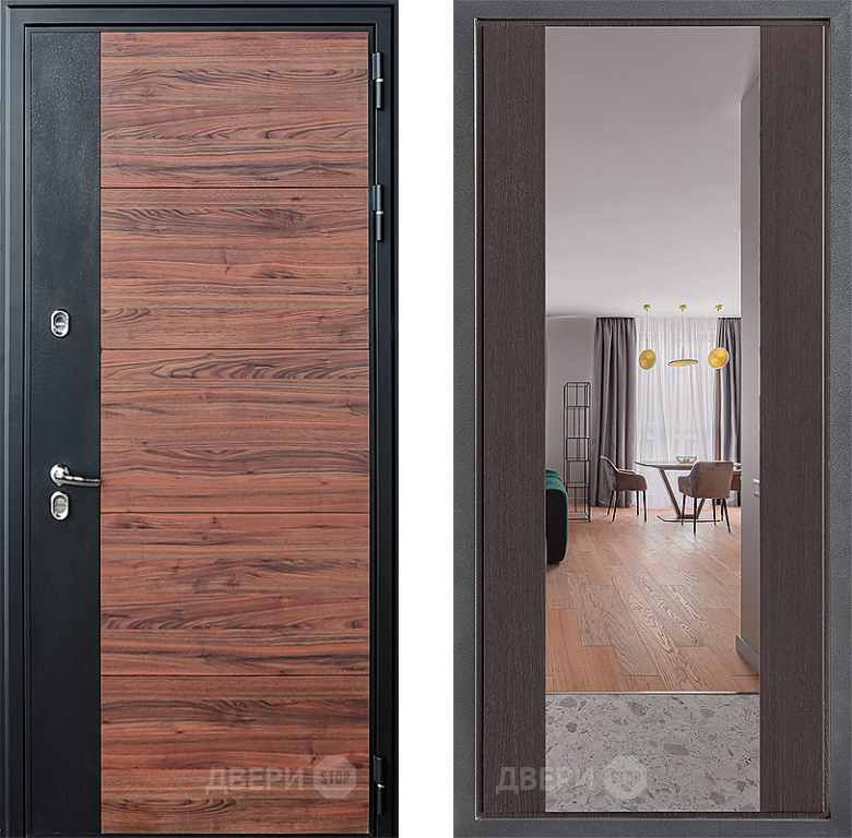 Входная Дверь Дверной континент ДК-15 Красное Дерево ТЕРМО ФЛЗ-1 Зеркало Венге 860x2050 мм
