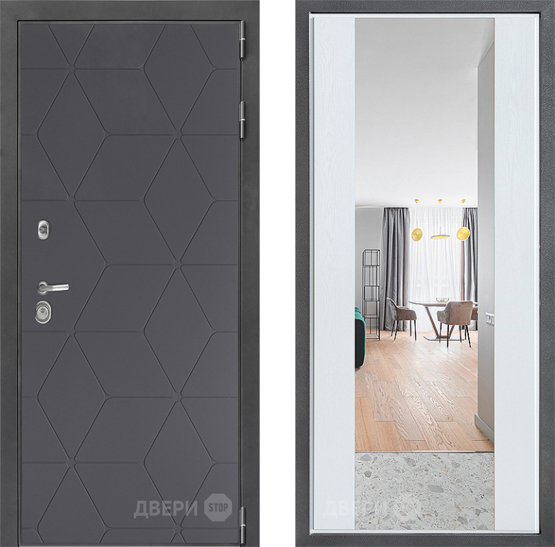 Входная Дверь Дверной континент ДК-3/744 ФЛЗ-1 Зеркало Белое дерево 860x2050 мм