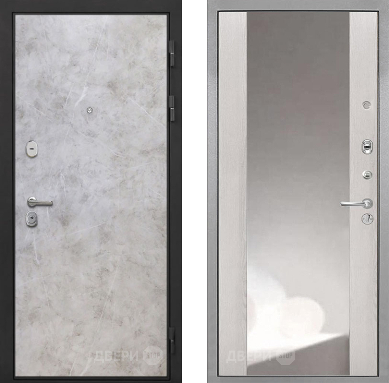 Входная Дверь Интекрон (INTECRON) Гектор Мрамор Светлый ФЛЗ-516 Зеркало Сосна белая 860x2050 мм
