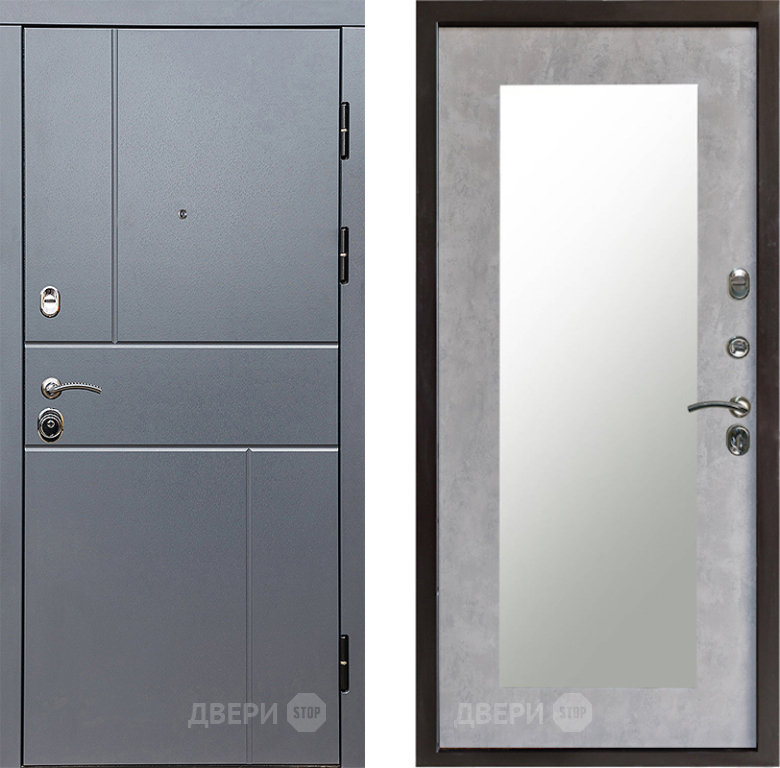 Входная Дверь Престиж Горизонт Грэй Зеркло Пастораль Бетон светлый 860x2050 мм