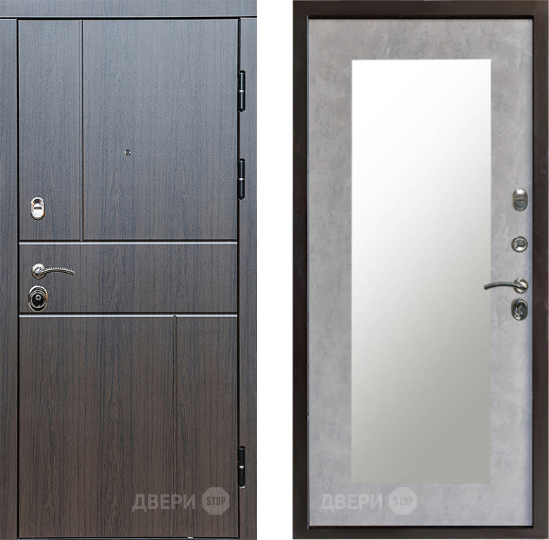 Входная Дверь Престиж Горизонт Венге Зеркло Пастораль Бетон светлый 860x2050 мм