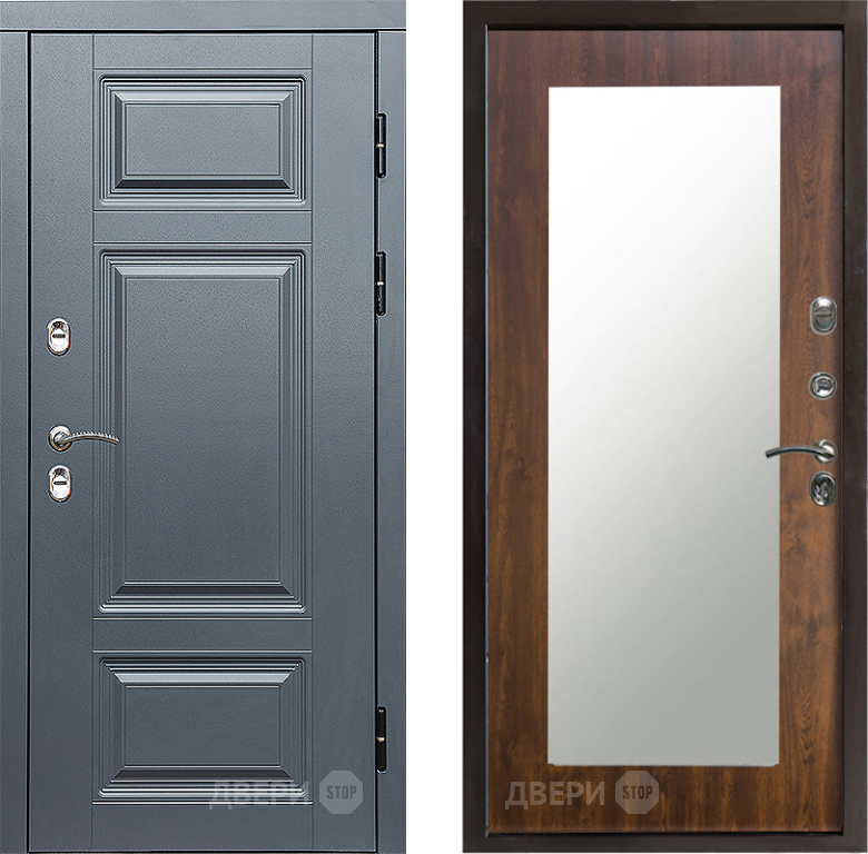 Входная Дверь Престиж TERMO с терморазрывом Премиум Грэй Зеркало пастораль Дуб 860x2050 мм