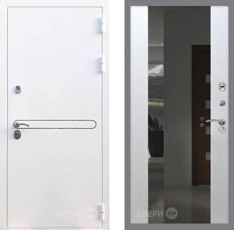 Входная Дверь Рекс (REX) 27 СБ-16 Зеркало Белый ясень 860x2050 мм
