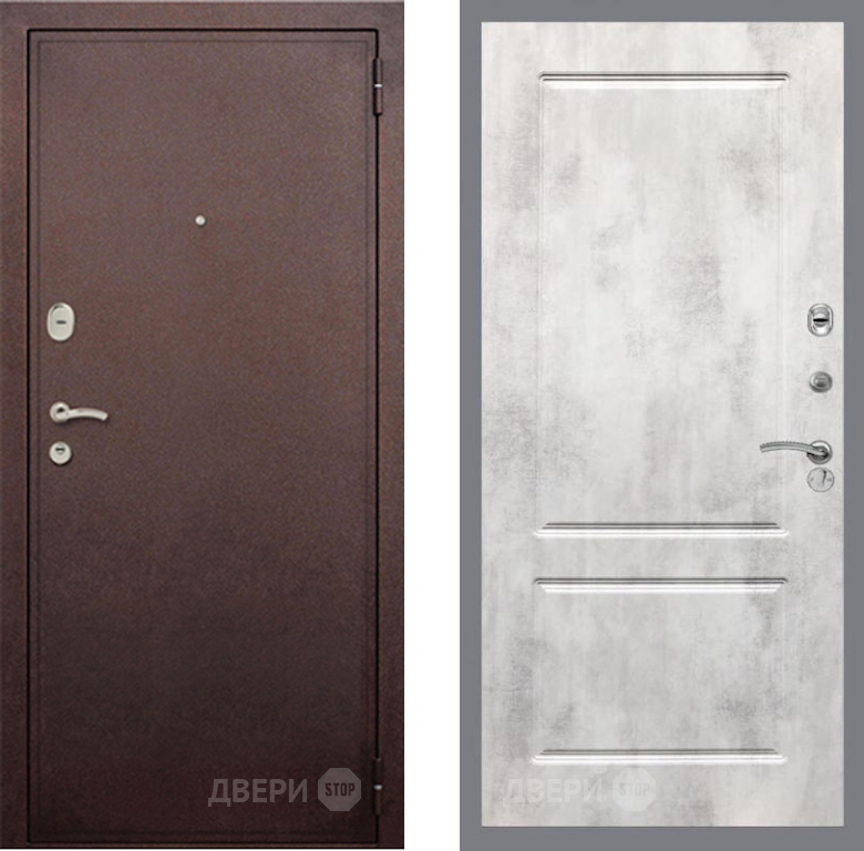 Входная Дверь Рекс (REX) 2 Медный Антик FL-117 Бетон светлый 960x2050 мм