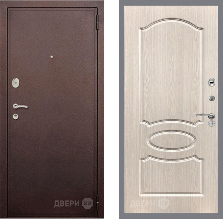 Входная Дверь Рекс (REX) 2 Медный Антик FL-128 Беленый дуб 860x2050 мм