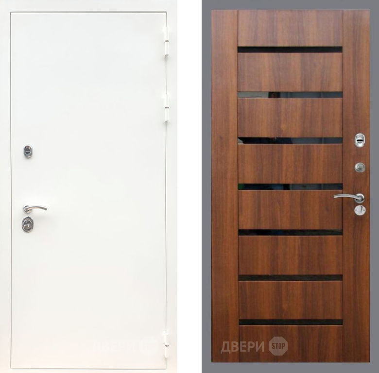 Входная Дверь Рекс (REX) 5 Белая Шагрень СБ-14 стекло черное Орех бренди 860x2050 мм