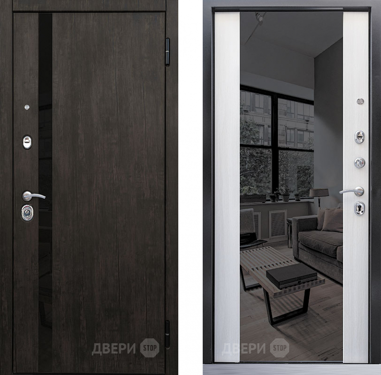 Входная металлическая Дверь Премьер зеркало тиковое дерево/лиственница белая в Зарайске 860х2050 мм