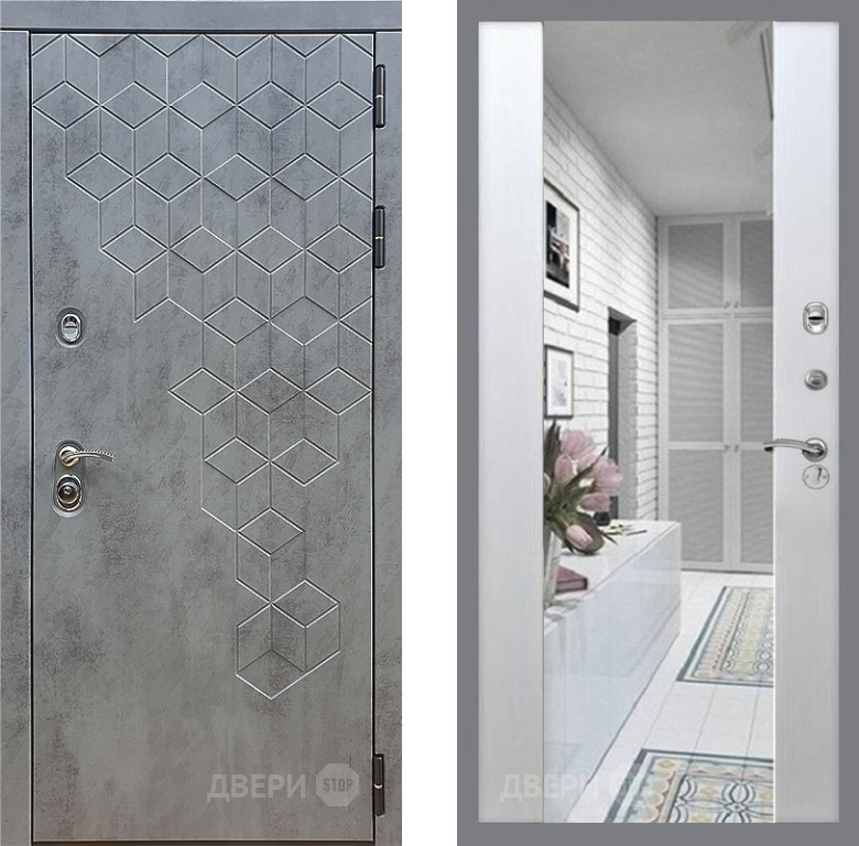 Входная Дверь Стоп БЕТОН Зеркало СБ-16 Лиственница беж 860x2050 мм