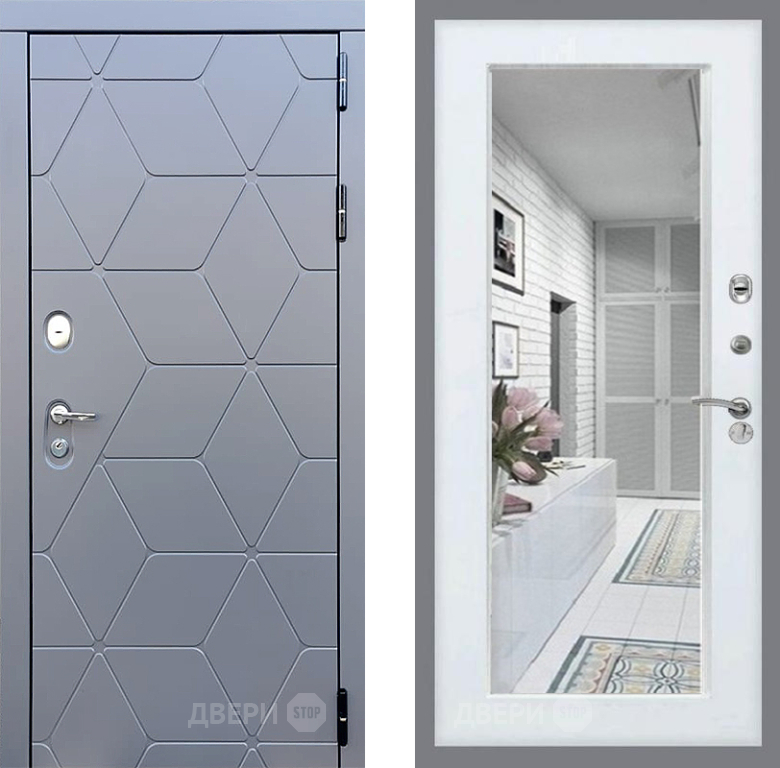 Входная Дверь Стоп КОСМО Зеркало Белый ясень 960x2050 мм