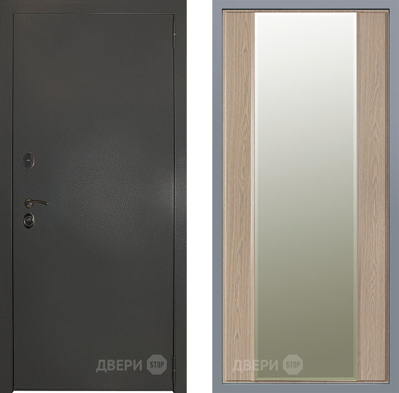 Входная Дверь Заводские двери Эталон 3к антик серебро Зеркало Макси Беленый дуб 860x2050 мм