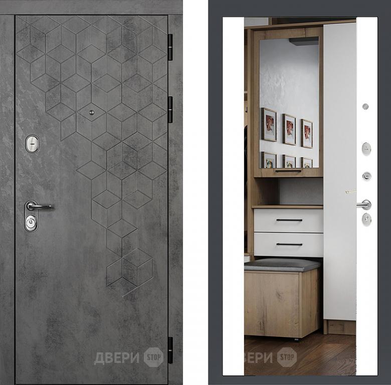 Входная металлическая Райтвер Бетон 1501 с зеркалом Белый матовый в Зарайске 860х2050 мм