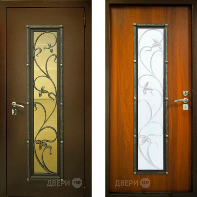 Заводские двери с ковкой и стеклом Лоза в Зарайске 860х2050 мм